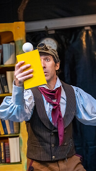 “Caça-Histórias” é um espetáculo de teatro-circo acerca de livros, histórias e coisas da vida!
